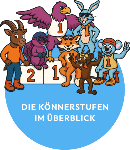 Skifahrer in diesem Level beherrschen den Stemmschwung. Er ist eine wichtige Fähigkeit, um das Skifahren zu beherrschen und die Kontrolle über die eigene Geschwindigkeit und korrekte Richtung auf der Piste zu haben. Das sind die Kinder im Level Eichkätzchen.